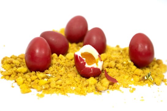 Αποσύρουμε από τη φωτιά και προσθέτουμε τελευταίο το βούτυρο. Αφήνουμε την κρέμα να κρυώσει και μετά την αφρατεύουμε στο μίξερ για να χρησιμοποιήσουμε την ποσότητα που χρειάζεται πάνω στη βάση της μαρέγκας που έχουμε ψήσει.
